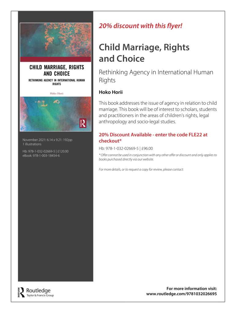 Child Marriage, Rights and Choice: flyer with a discount code :)